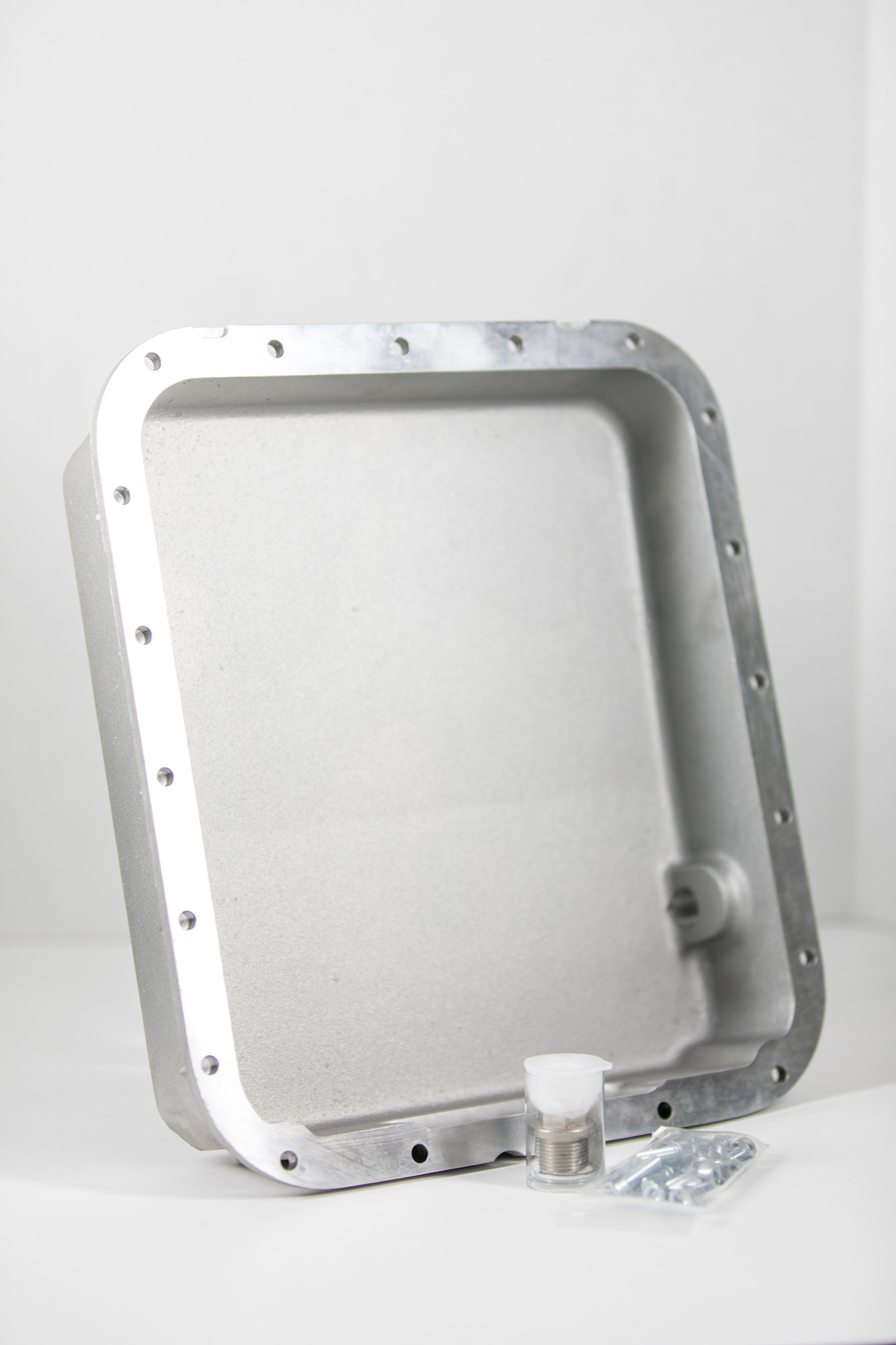 Proper utilization of our aluminium pan will also serve as an alternative to the conventional transmission skid plates. Installation of this pan will lower transmission fluid temperatures. Give you the confidence to run your vehicle under heavy loads for an extended period of time. ¼” aluminum fins running the length of the pan with a progression from ¼” to a 5/8” depth significantly lower the fluid temperatures. Rigorous testing has shown a temperature drop of up to 40* at highway speeds. This meaning the transmission will cool the motor through the radiator heat transfer. Our 4 EAT phase 2 transmission pan is not recommended for lowered cars. In addition we do have a special order lowered car version that is ¼” depth fins the whole length of the transmission cooling pan. Please call RFC Industries; OP-Shop for special order information.