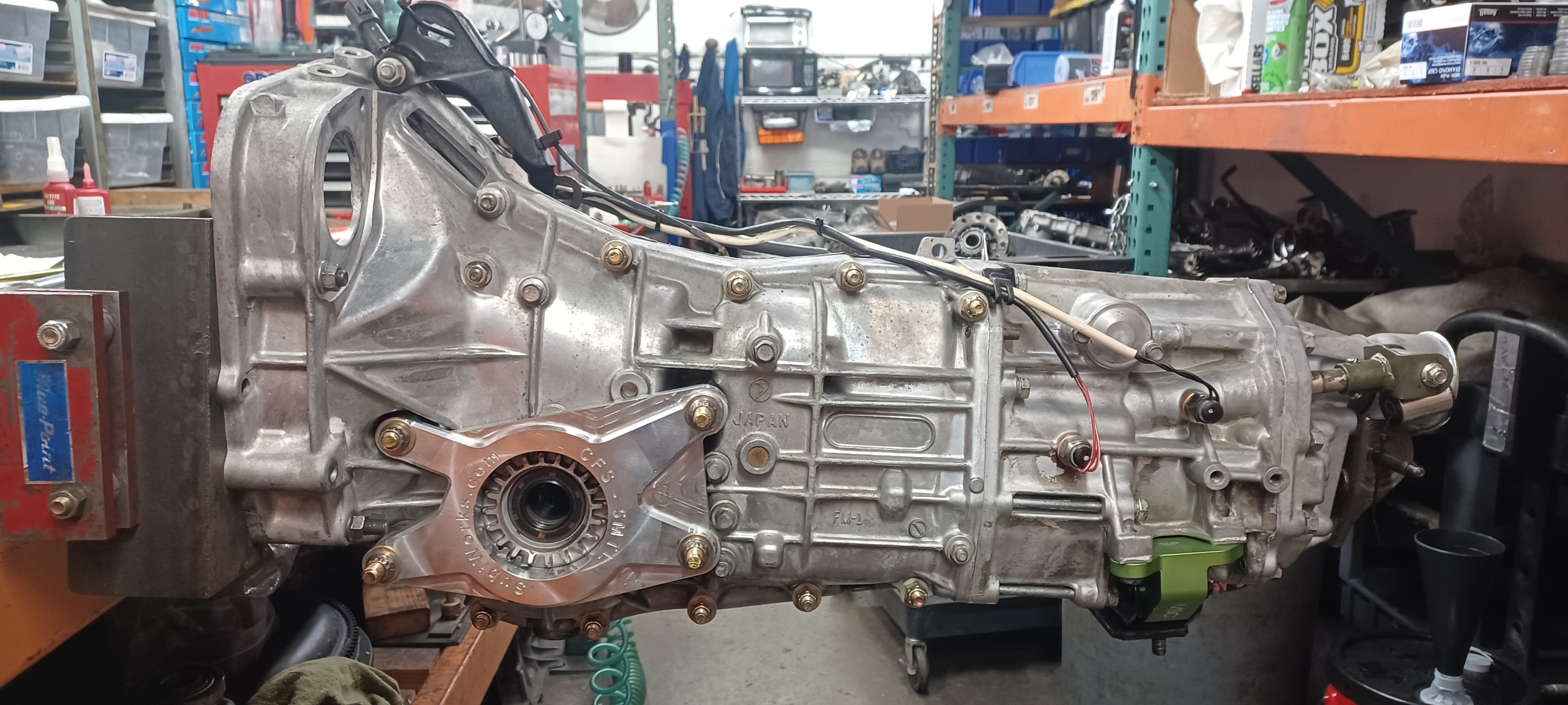5MT TRANSMISSION CASE FLEX STOPPER, CFS by Real Functional Car Parts is a unique product that supports the front differential flex caused under extreme load.  With a few case modifications to add the heavy duty through bolts and some measurements, the CFS can be added to the transmission without taking it apart.  When properly spaced the CSF will add 5x the support to the case to aid in mitigating the flex from the pinion gear pushing the ring gear away as they transfer the power to the ground.  Our in-house engineered and CNC machined CFS gives that much needed support to the 5mt and 6mt cases to ensure proper R+P engagement is maintained under all conditions.  With options for standard and reversed configurations, this is the solution for a longer lasting transmission under severe loads.